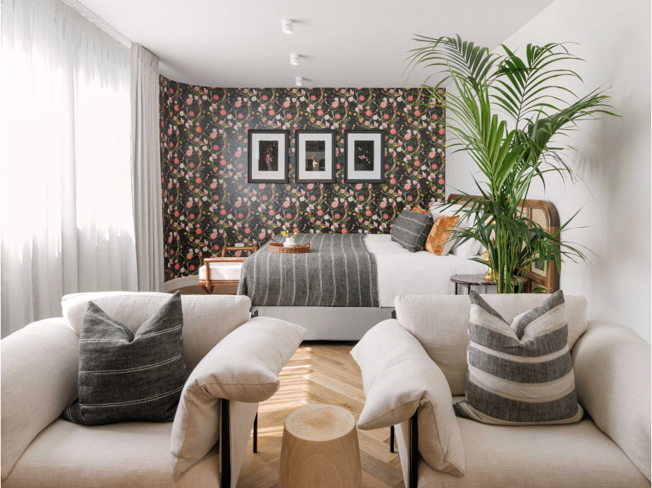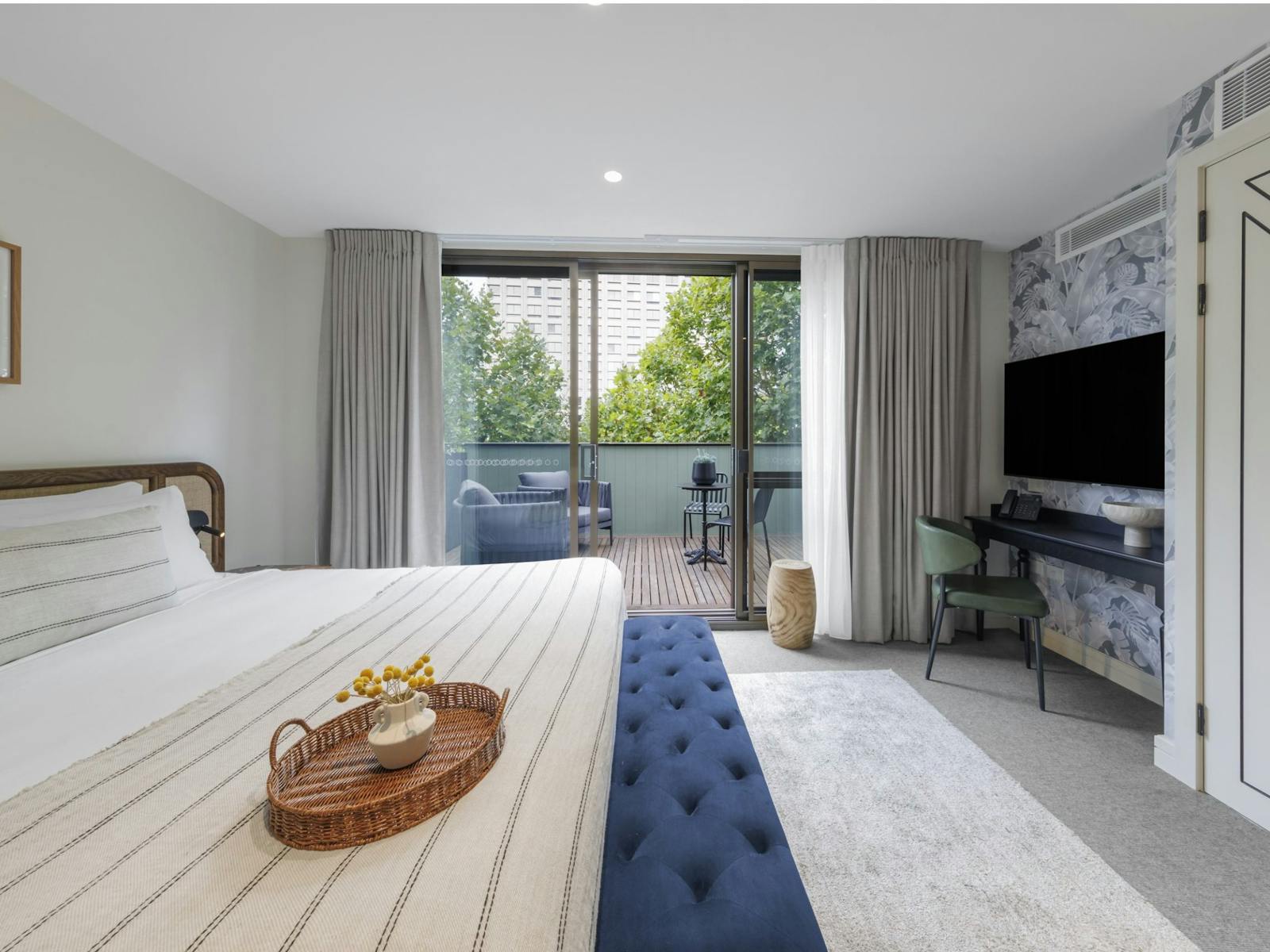 酒店提供五種房型,其中部分房間設有私人露台,讓旅客能在陽光下悠閒地欣賞城市的美景,享受片刻的寧靜。另外,酒店在頂樓設有共用的室外空間,酒店的建築與室內設計均由悉尼本地藝術家操刀,巧妙地融合了創意與自然美感,讓整體空間散發出獨特的藝術氛圍。