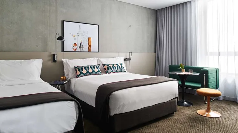 酒店共有153 間客房,提供 10 種不同房型,最大房型可容納 4 至 5 人,十分適合團體旅行。部分房型更設有陽台,讓旅客能在房內欣賞悉尼的城市風景。房間設計以簡約、乾淨 為主,營造舒適自在的住宿氛圍。值得一提的是,所有房價均包含早餐,而若從官網直接預訂,還可享有相應回贈優惠。