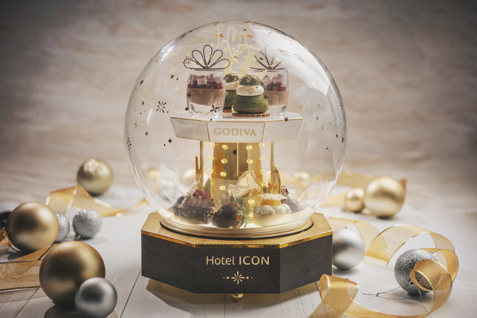 除了晚餐,GREEN 與 GODIVA 再度合作帶來華麗升級的「星願木馬」三道菜下午茶,以夢幻水晶球造型層架呈上 GODIVA 朱古力甜品,是今年節日最矚目的打卡亮點之一。下午茶亦會在 Timeless Lounge 晚市時段供應,讓客人在無敵維港景色下品嚐香濃細膩的朱古力甜點。GREEN 更於除夕推出煙花半自助晚餐,享受佳餚後可直接移步至 9 樓露天泳池欣賞維港煙花倒數,景觀震撼。