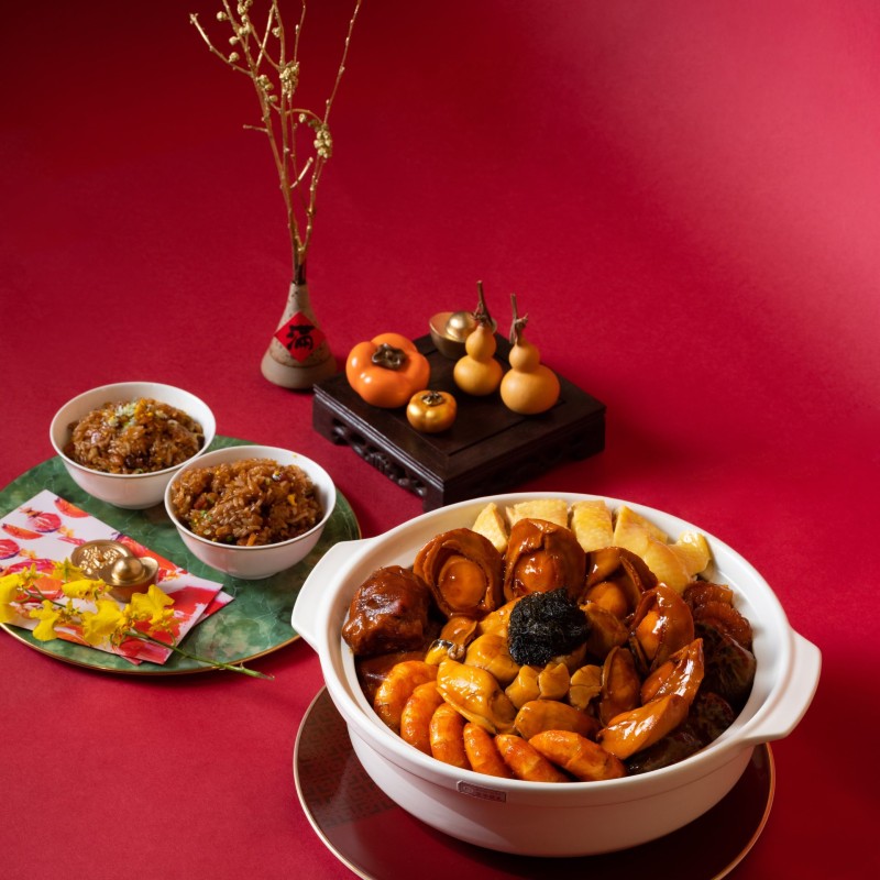 美心中菜今年推出多款新春粵式盆菜選擇,供應期為 2 月 6 日至 3 月 1 日,需提前最少三天親臨分店預訂,並於全港多間分店自取。當中,粵式鮑參花膠福滿盆菜(6 位用)售價 HK$1,908,附送金湯勺及金筷子,盆菜嚴選斯里蘭卡黃玉參、福建鮑魚、花膠筒、瑤柱甫、蠔豉、帶子及鮮蝦等 18 款矜貴食材,配以傳統南乳汁烹調,層次豐富,寓意「盆滿缽滿」,節慶感十足。另有粵式鮑魚.花膠.豐足盆菜,分為 4 位用 HK$889、6 位用 HK$1,299 及 12 位用 HK$1,989,主打原隻鮮鮑魚、厚身花膠、日本元貝,並配搭貴妃雞、燒鴨、大紅燒肉、墨魚乾炆豬肉及多款傳統配料,隨盆菜附上鮑魚汁及麻辣汁兩款秘製醬汁,並加送魔鬼辣椒粉。限時優惠期間,惠顧 4 位或 6 位盆菜可獲贈臘味糯米飯(價值 HK$290),而 12 位盆菜則可同時獲贈上湯虎蝦伊麵及臘味糯米飯(總值 HK$590),購買多個盆菜可按數量倍增贈品。