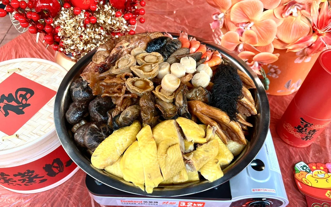 盆菜現已接受預訂,所有訂單需提前至少一天預訂;取貨日期為 2026 年 2 月 15 日至 19 日。盆菜建議即日享用,如需暫存,必須存放於攝氏 4 度以下冷藏,食用前需以明火或電磁爐慢火加熱至完全煮沸。