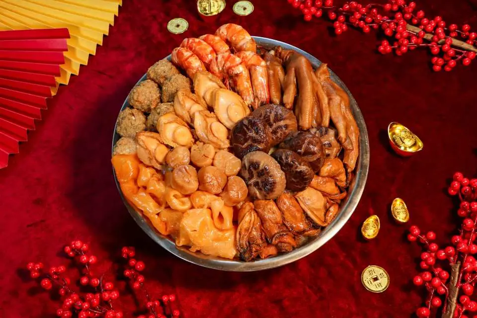 周中推出奢華鮑參金蠔豐盛盆菜,屬限量發售款式,提供免費直送服務,並隨盆菜附上和順記秘製麻辣醬一樽、秘製鮑汁一包及上湯一樽,方便翻熱享用。盆菜分為兩款人數選擇:六人份售價 HK$2,688,以及十人份售價 HK$3,688,後者更加送南非大鮑魚一隻,兩款均為每日限量 25 盆,需於最少三天前預訂。盆菜用料矜貴豐盛,包括秘汁炆靚鮑魚、特級爽口遼參、鮑汁燴花膠筒、甜蜜蜜餞金蠔、日本元貝、白灼鮮味海蝦、日式炆牛肋條、古早秘製腩肉、鮑汁炆焗花菇、農場走地切雞、明爐脆皮燒鵝、酥炸香芋頭件及肉汁煮鮮蘿蔔等,多重滋味層層堆疊。盆內更貼心附設防燶底設計,大大減少翻熱時燶底機會,而秘製鮑汁則以鮑魚、金華火腿、瑤柱、老雞、排骨及鴨等食材熬製足 7 日 7 夜,味道濃郁而不膩。送貨日期為 2025 年 12 月 20、21 日 及 2026 年 2 月 15、16、17、18 日,送貨時段分為上午 10:00–14:30 或下午 14:30–19:30,送貨時間不可指定,司機將於指定時段內到達並致電客人,於可停車位置完成交收。
