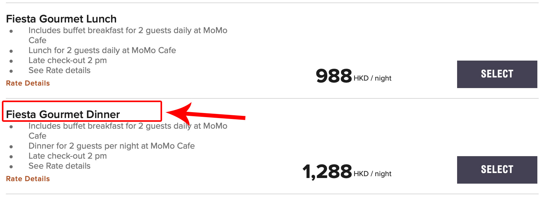 預訂時目到「Fiesta Gourmet Dinner」就係今次優惠~