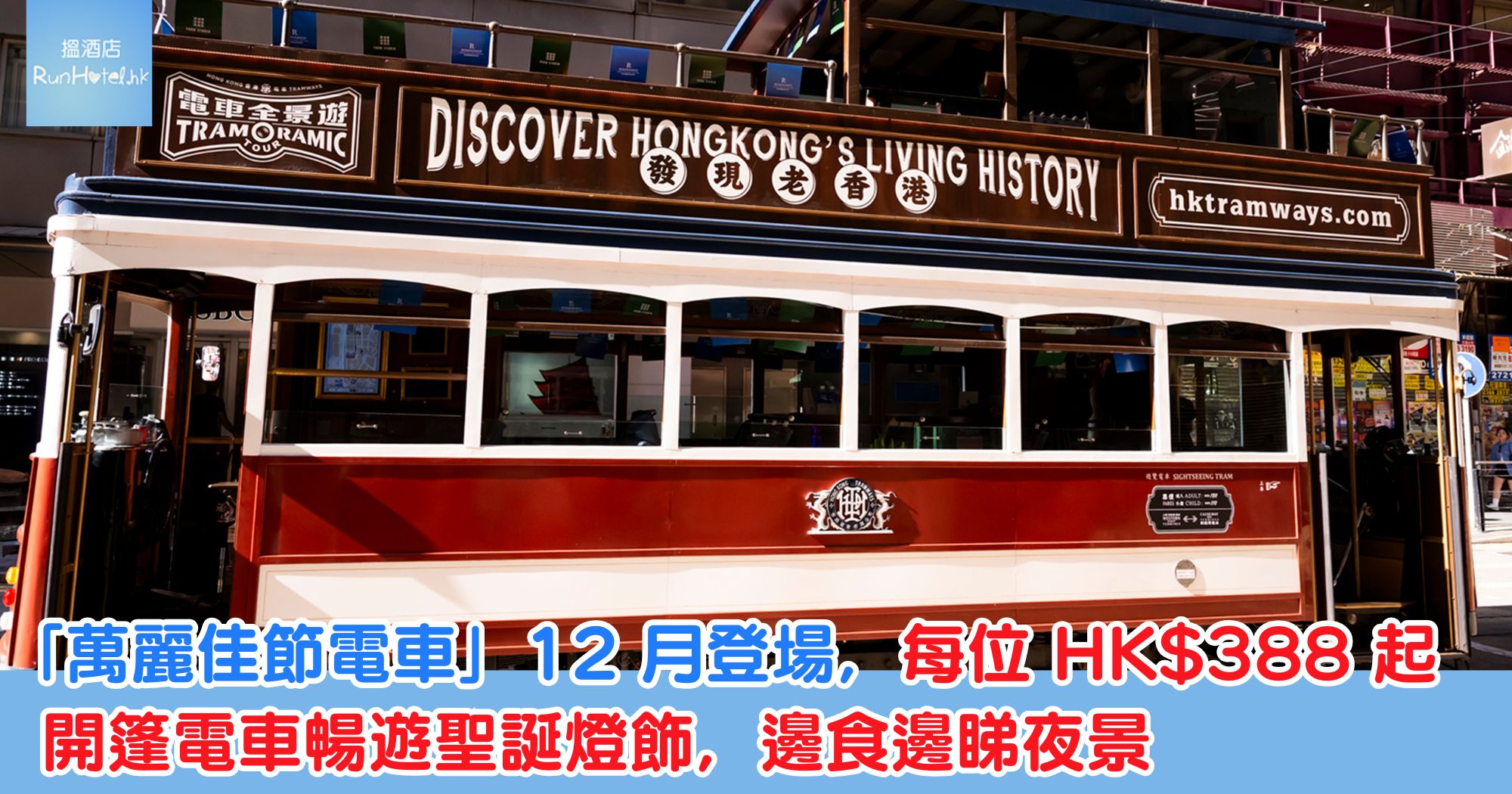 萬麗海景酒店早前爆滿的「叮叮餐廳」將於今個 12 月再度登場!由 2025 年 12 月 1 日至31 日,復古開篷電車「電車全景遊」將化身成「萬麗佳節電車」,每晚穿梭港島鬧市,讓乘客感受濃濃聖誕氣氛。