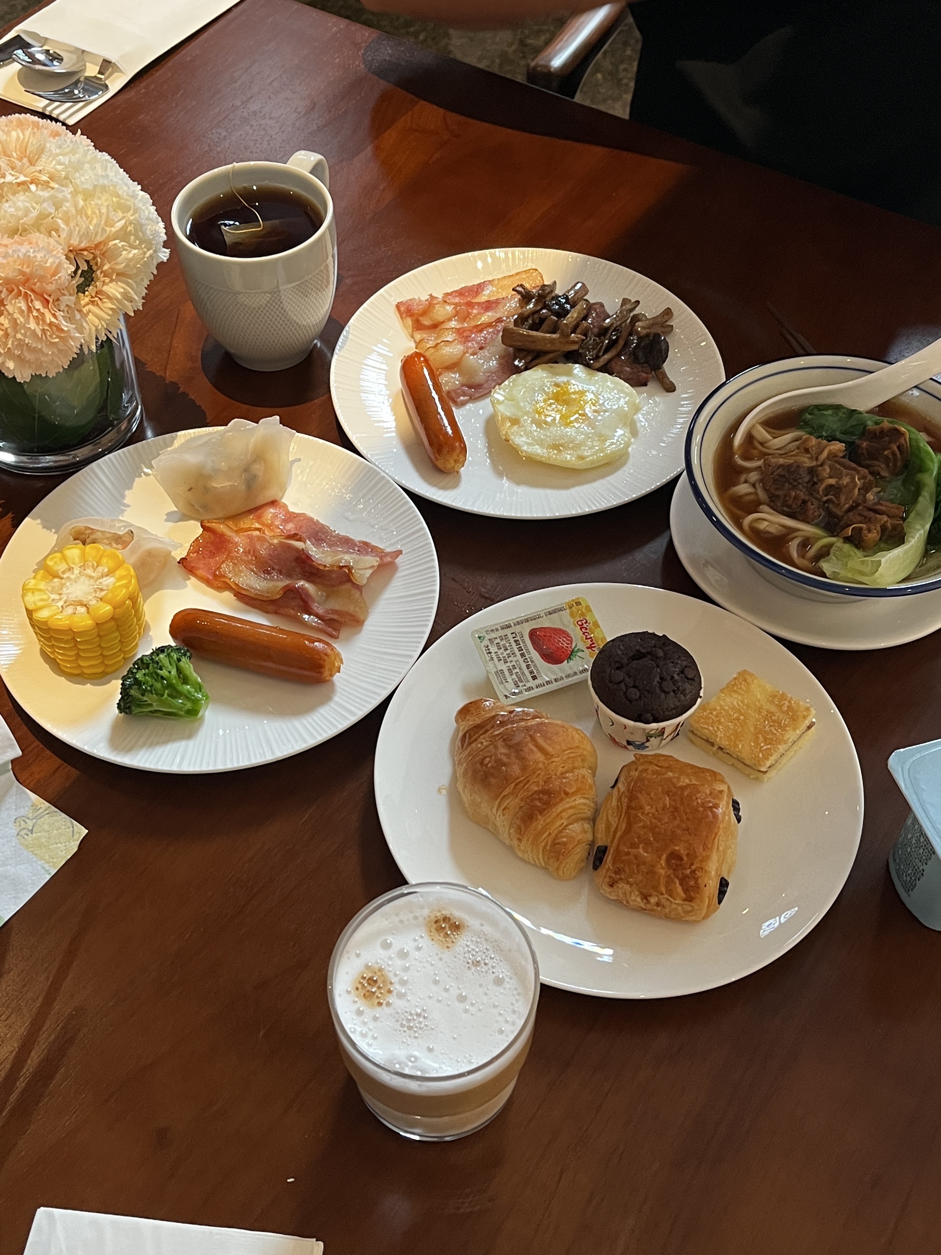 酒店的全日餐廳提供中西式半自助早餐,營業時間為週一至週五早上 7:00-10:00,週六日早上7:00-10:30。早餐形式特別,點心係師傅手工現做的,仲有一些菜品係在餐牌上現點現做,特別推薦班尼迪克蛋同現煮的湯粉、粥等。酒店設有户外用餐區域,可以在花園庭院中享用早餐,感覺非常chill。早餐出品衞生美味,服務員主動問是否需要現做的湯粉、粥,服務非常好。而酒店住客到隔壁「金谷酒家」用餐可享 85 折優惠,金谷酒家主打粵式餐飲,菜色豐富,燒鵝更是一絕,皮酥肉嫩,值得一試。旅行其中一個最重要的樂趣就係「食」,呢度可以一次過滿足你對味覺的期待。