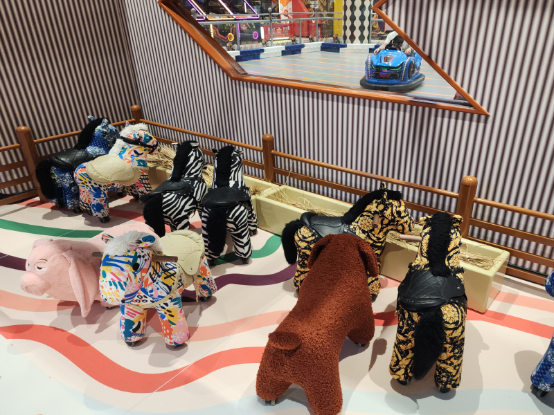 - 親子互動:親子碰碰車、角色扮演區(迷你超市、化妝室、DIY 廚房)、牛牛農場、變裝區/公主裝扮等。