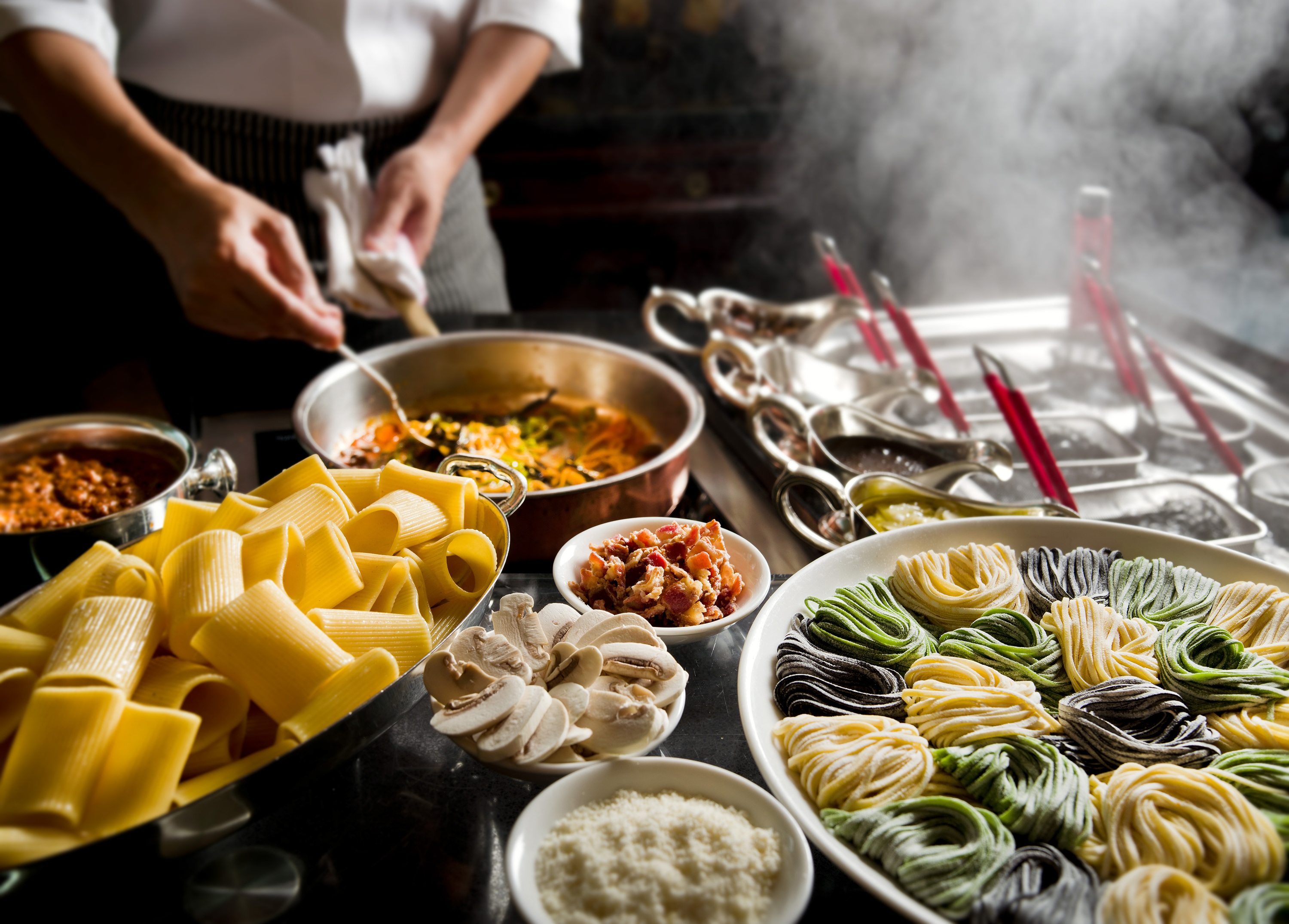餐點包括冰鎮海鮮盤(波士頓龍蝦、鱈場蟹腳、大蝦、法國青口及海螺),另加 HK$30 可享法國生蠔乙隻。主菜選擇豐富,如香烤羊架、燒牛肋肉、法式芝士忌廉焗龍蝦及西班牙海鮮飯。甜品區提供意大利芝士蛋糕、伯爵茶朱古力慕絲及豆乳奶凍等十多款甜點。