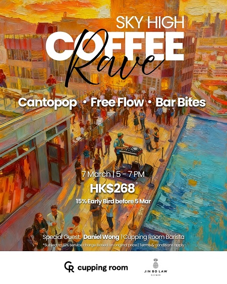 啟德的香港啟德帝盛酒店旗下 Jin Bo Law 空中酒吧將於 2026 年 3 月 7 日(星期六)舉辦「Sky High Coffee Rave Party」,並聯乘本地精品咖啡品牌 Cupping Room,於下午 5 時至晚上 7 時舉行兩小時黃昏派對,每位收費 HK$255。活動結合咖啡靈感特調、無限暢飲飲品及現場音樂演出,打造咖啡與音樂交融的新體驗。