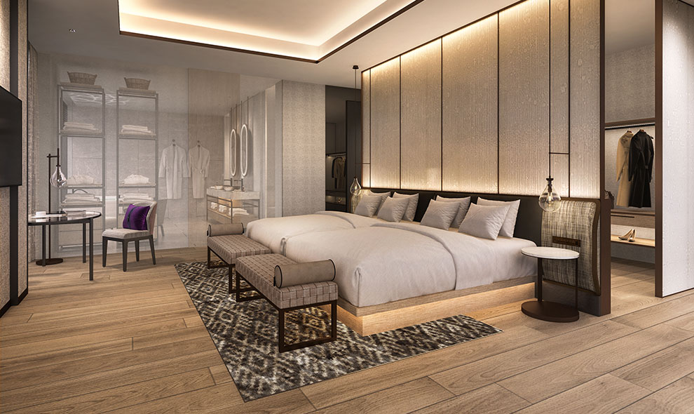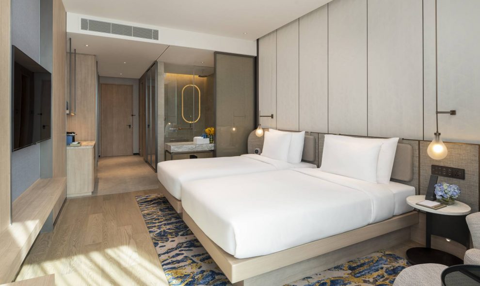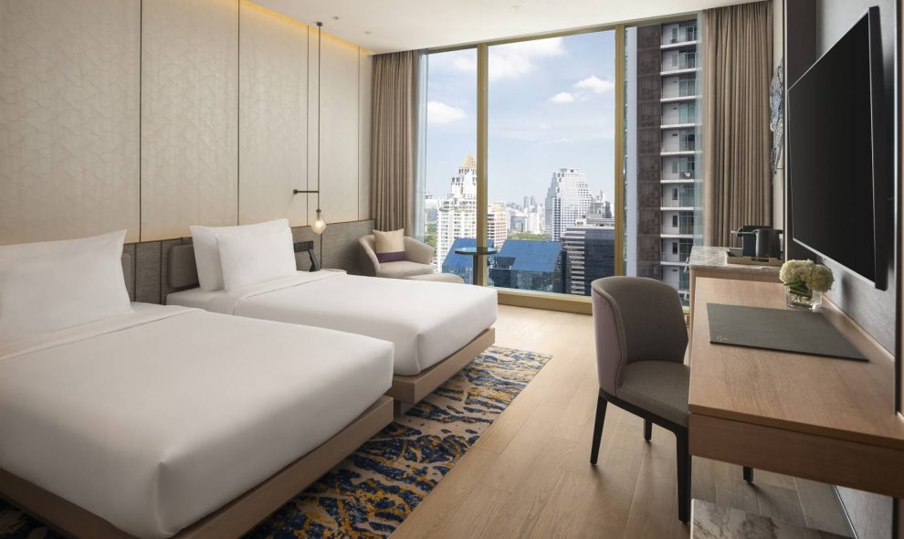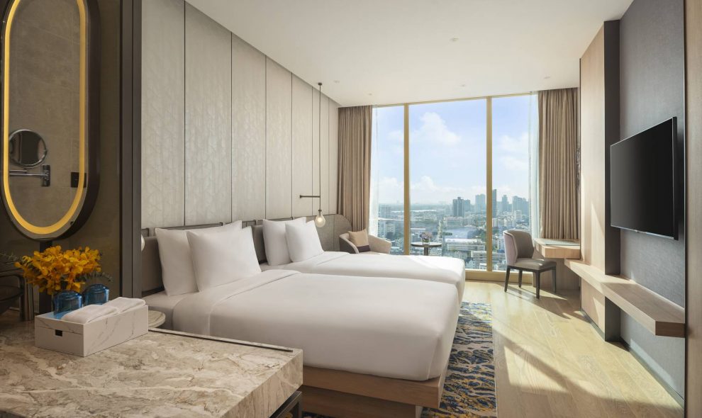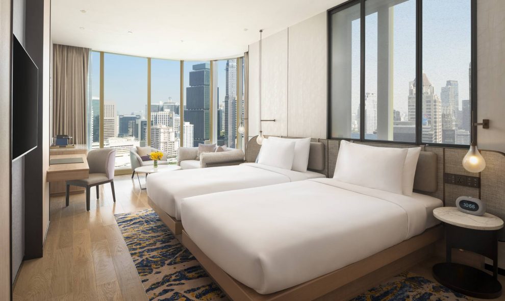 酒店共設405間客房及套房,面積由約430至1,916平方呎不等,另設36間長住型公寓式客房,面積介乎約915至1,399平方呎,配備小廚房,極適合攜同家人長期度假的旅客。入門的Superior Room面積約430平方呎,每晚房價由泰銖6,500起(另加10%服務費及7%稅項),以港幣換算約港幣1,588元起。現時酒店提供開幕紀念禮遇,包含每日早餐、每房每晚最高泰銖1,500元餐飲消費額,以及延至下午4時退房的尊享服務,對於計劃盡早入住的旅客來說十分超值。較大型的Premier Corner Room面積約549平方呎,設落地大窗,可飽覽城市全景;而長住型公寓則提供最大約1,399平方呎的寬裕空間,三代同堂出遊亦毫無難度。