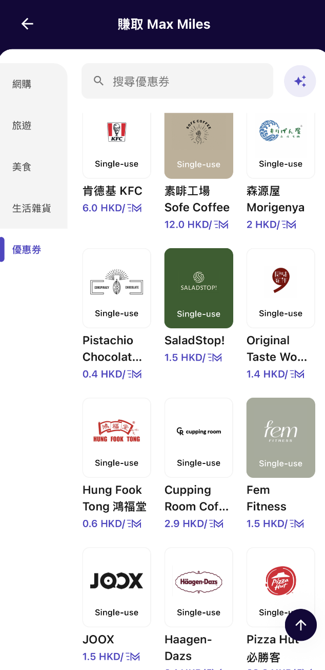合作商戶方面,HeyMax 在香港的覆蓋率極高,由日常超市、便利店、個人護理店,到外賣平台、網購平台、旅遊網站應有盡有。例如百佳、屈臣氏、7-Eleven、HKTVmall、Foodpanda、淘寶、Agoda、Trip.com 等等,幾乎是香港人最常用的日常服務。換句話說,每天一杯咖啡、一單外賣、買家用品、上網買機票,都可以同時賺 Miles,加上信用卡本身的回贈,只會愈用愈抵。平台其中一個最實用的例子,就是經 HeyMax 購買 HKTVmall 現金券。以二百元現金券為例,用戶在沒有任何額外動作的情況下,除了獲得信用卡一般的網購回贈外,亦可以從 HeyMax 拿到 50 Max Miles。如果你平日經常用 HKTVmall,長用長有,累積到 140 張 HK$200 嘅 HKTVmall 禮券,即大約 HK$28,000 現金券時,送的 Miles 已經足夠換一張飛泰國的機票,再加上信用卡的額外回贈,真正實現「愈買愈賺」的概念,甚至無需刻意消費,就能換到旅行。