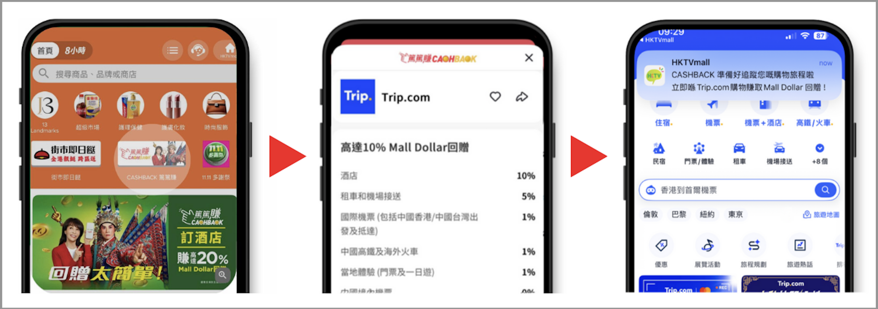 HKTVmall 除咗係購物平台,佢哋嘅 CASHBACK 篤篤賺仲幫你搵盡着數!由即日起至 2025 年 12 月 31 日回贈特別再加碼,用戶只需透過 HKTVmall App 進入指定旅遊或商戶平台預訂酒店、機票、租車或購物,即可賺取高達 20% Mall Dollar 回贈!賺到嘅 Mall Dollar 可以當現金喺 HKTVmall 買日用品或於街市即日餸用,1 蚊 Mall Dollar = 1 蚊真錢