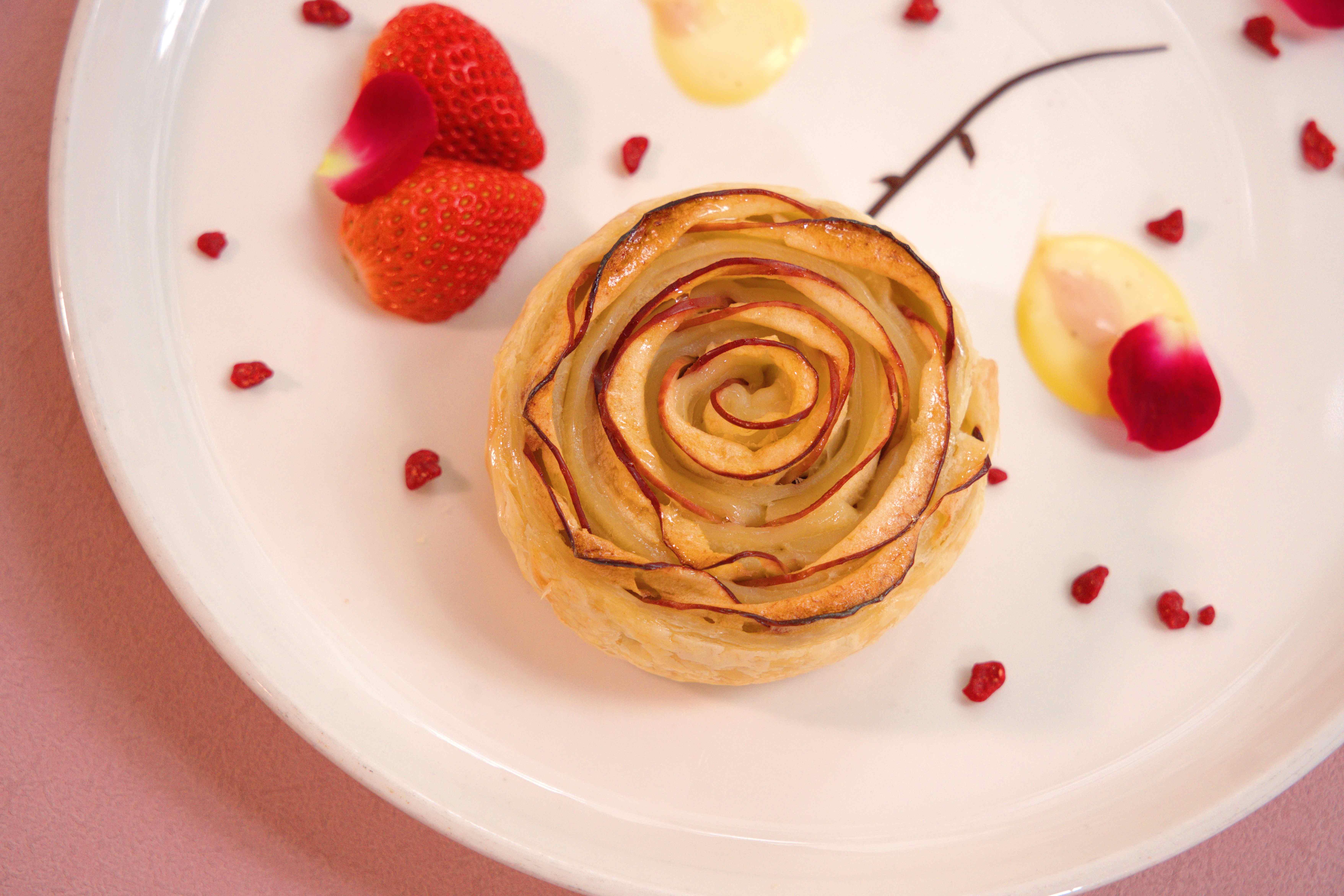 甜品方面,以蜂蜜蘋果玫瑰酥皮作結,酥皮塑造成玫瑰造型,賣相精緻,蘋果果香與蜂蜜甜韻在層層酥脆口感中綻放。其後另奉上精美甜點,並以咖啡或茶作結,讓整個情人節夜晚在柔和餘韻中完美落幕。