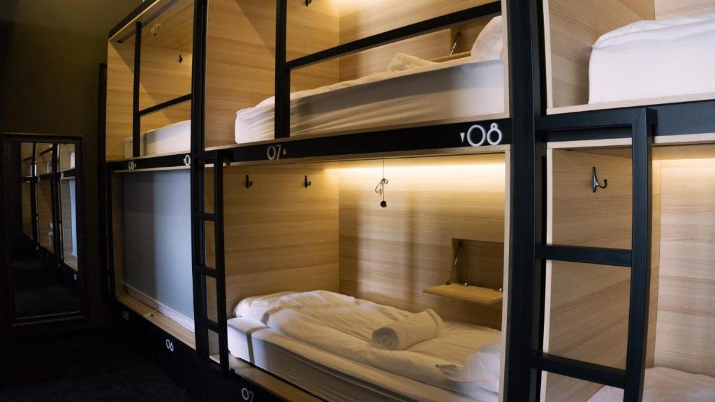 另一間也是在雷克雅未克的CityHub Reykjavik是一間富有未來感的旅館,位於市中心,徒步約 5 分鐘就能到達彩虹街及Bonus超級市場,無論觀光或是購物都非常方便。而且旁邊就有巴士站,參加當地團或使用任何接送服務都非常便利。CityHub Reykjavik 提供自助入住服務,無論任何時間入住都可以快速辦理,這點非常值得稱讚!CityHub Reykjavik 有別傳統青年旅館,床位是太空艙設計,每個房間均可入住 2 人,空間十分寬敞,可以放置行李,而且每個房間均有衣櫃,私隱度超高!另外亦有儲物櫃放置大型行李,十分細心。價錢方面,最便宜的房間約 $870 一晚,小編絕對覺得是物超所值!