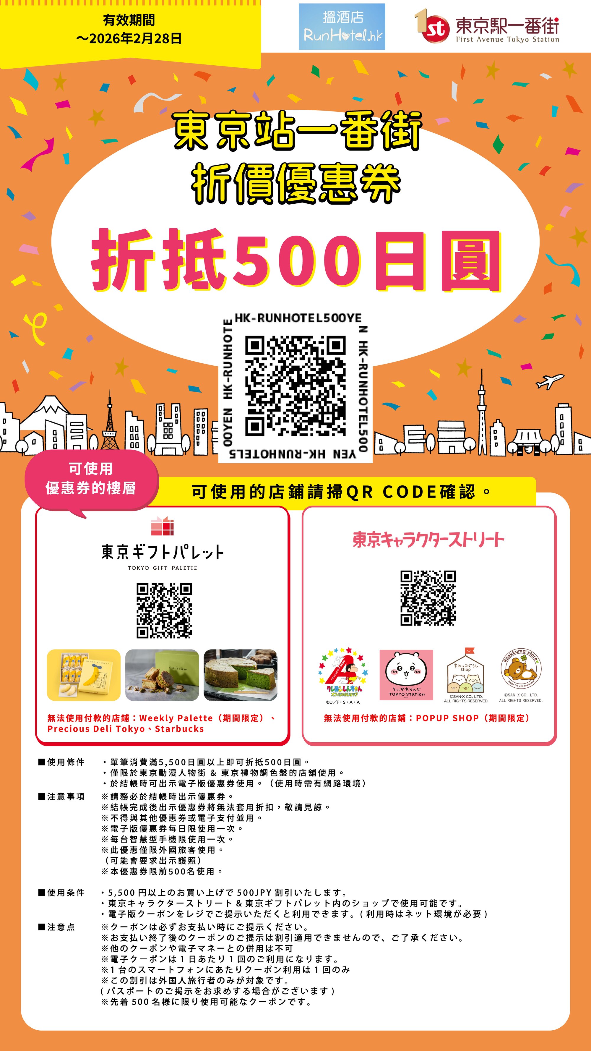 大家去 Shopping 之前,記得用埋東京站一番街優惠,單筆滿 ¥5,500 即減 ¥500!只需用手機出示此頁圖片的 QR code 給店員掃瞄即可使用(詳情)。