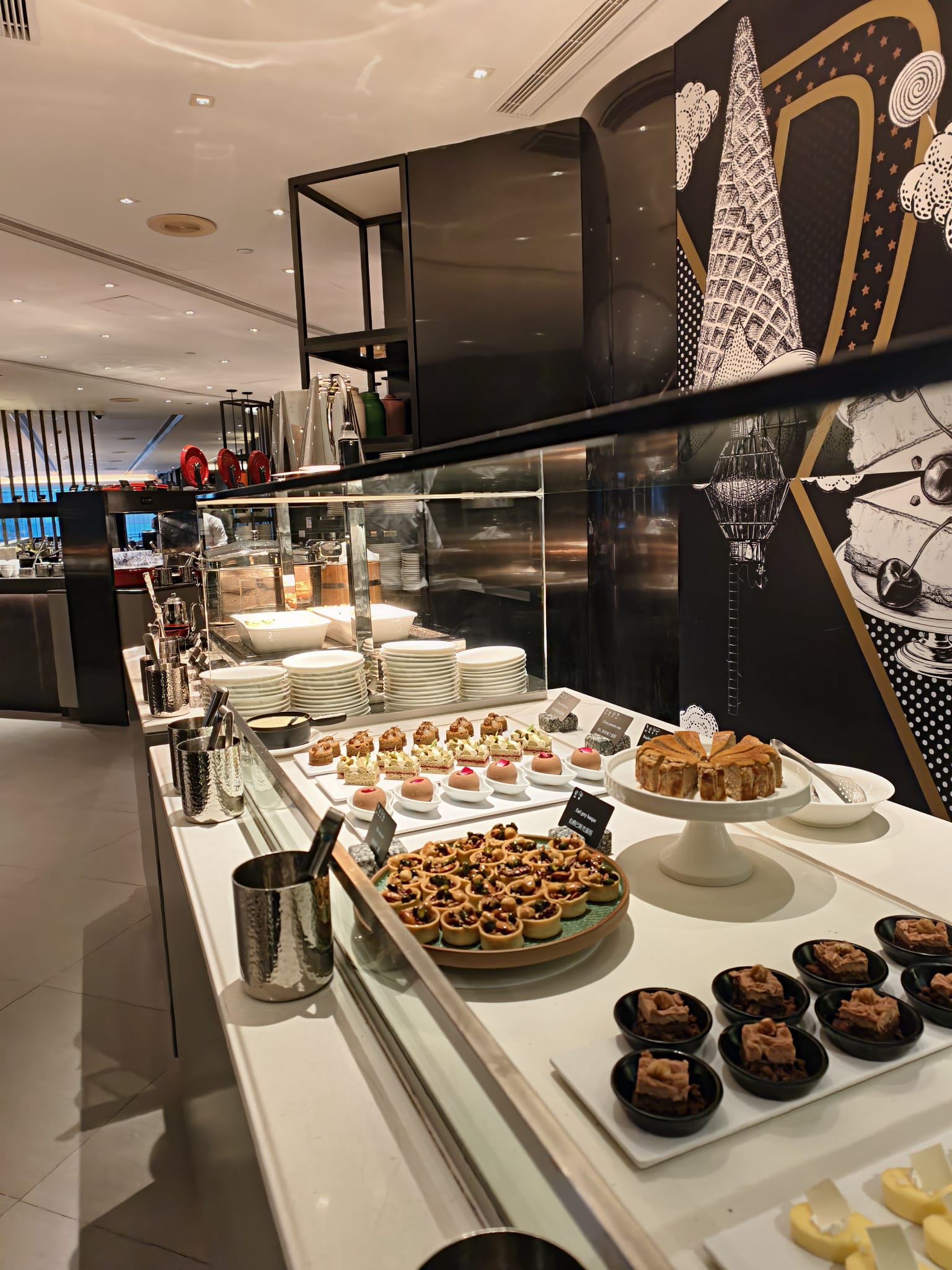 自助餐靈魂當然少不了海鮮區!JW Café 嘅冰鎮海鮮枱陣容一如既往咁強勁,包括新鮮龍蝦、蟹鉗、鱈場蟹腳、麵包蟹、鮮蝦等。即席切肉專區有香煎澳洲和牛牛扒、香草焗三文魚、烤羊架同法式香草牛油焗蝦。想食地道港味?即煮麵檔就最啱!提供多款自家製配料如鮮蝦雲吞、炆牛腩、牛筋 等,讓你自由搭配出個人化「港式車仔麵」,極具地道風味。甜品部分亦絕對係打卡位,推介斑蘭戚風蛋糕、伯爵茶巴斯克芝士蛋糕、鴛鴦瑞士卷、泰式奶茶奶凍同低糖果仁撻,款款都精緻細膩,仲有即席製作嘅朱古力心太軟同多款雪糕!