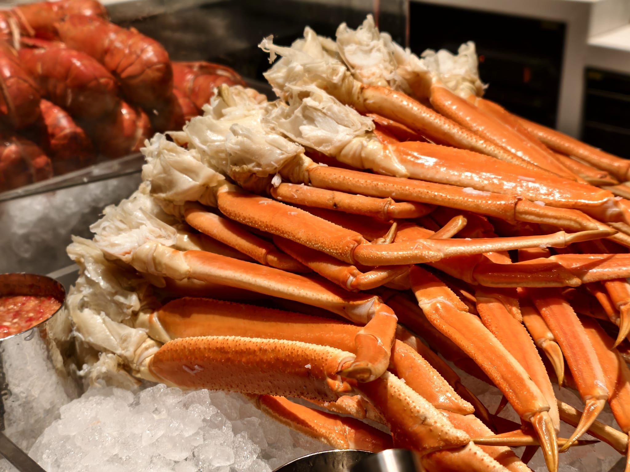 ▼新鮮龍蝦、蟹鉗、鱈場蟹腳、麵包蟹、鮮蝦等