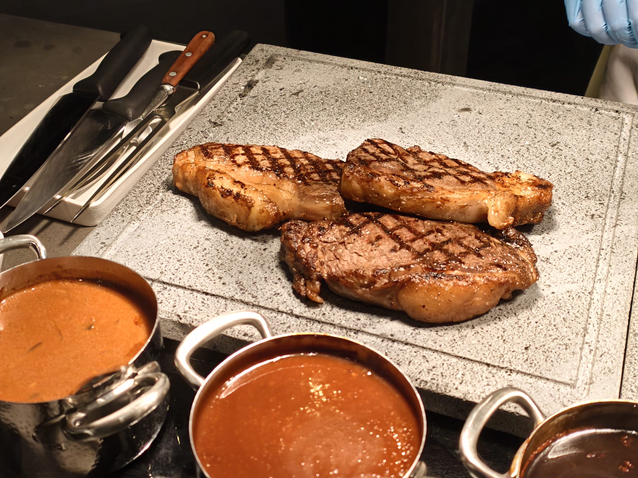 ▼即席切肉專區有香煎澳洲和牛牛扒、香草焗三文魚、烤羊架同法式香草牛油焗蝦