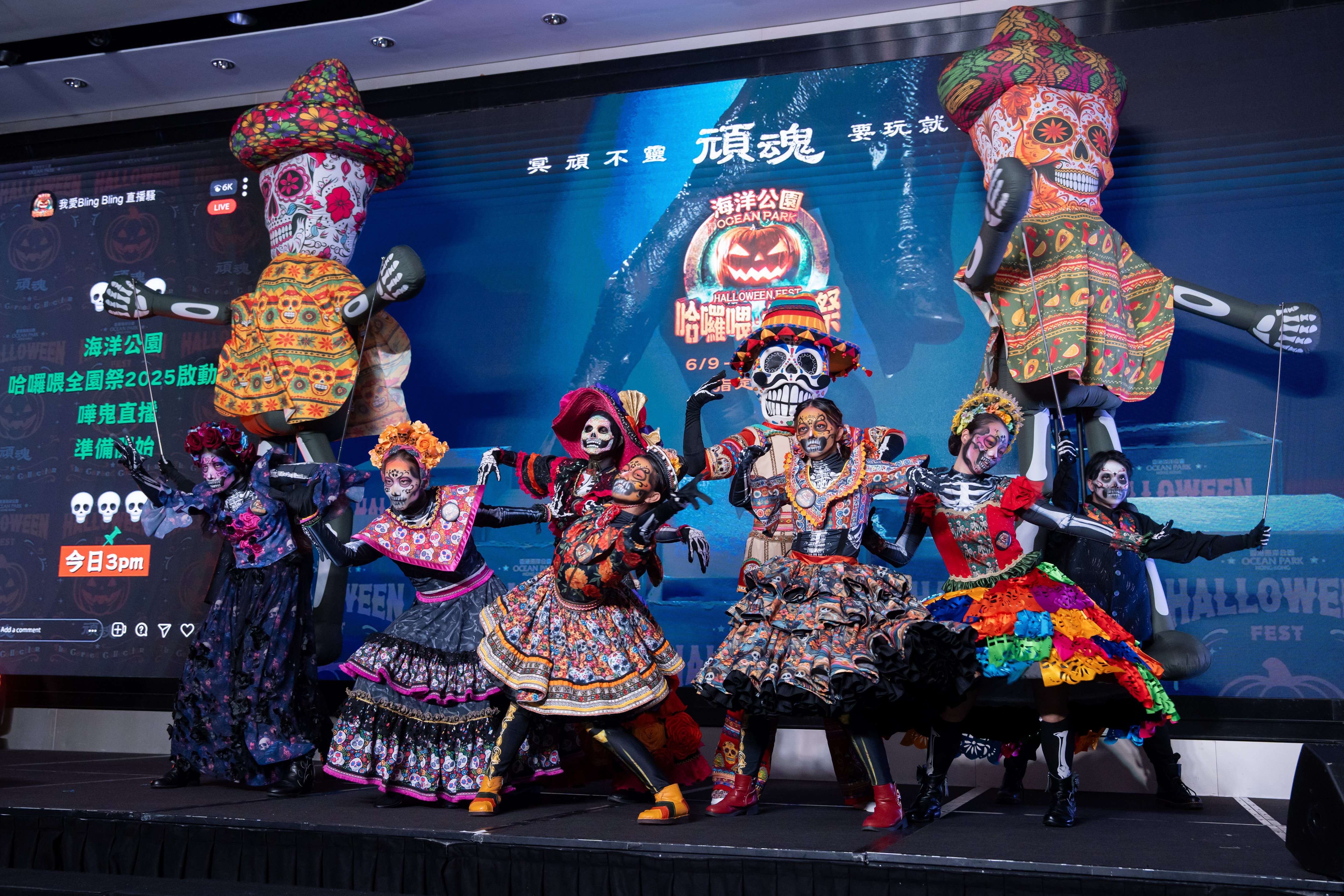 今年仲有全新十大舞台表演將把恐怖與娛樂融合到極致。包括由「嘩鬼主播」主持的《怨靈盲盒開箱直播》、玩具公仔上演的高難度舞蹈《異界折骨公仔舞》,以及「紙紮巨星回魂夜」的詭異音樂演出。同時,經典的「天師殭屍跳跳跳」將重現捉鬼大戰,「惡靈獵殺隊」亦會全力出擊。山上舞台則由陰間爆紅男團《華麗地獄 OPPA Show》掀起尖叫潮,配合「亡靈樂隊」、「骷髏極樂天團」及「亡靈狂歡慶典」等表演,將夜晚化作連場狂歡。而「亡靈火花怪客」更會挑戰極限速滑,以驚險動作把觀眾嚇到靈魂出竅。