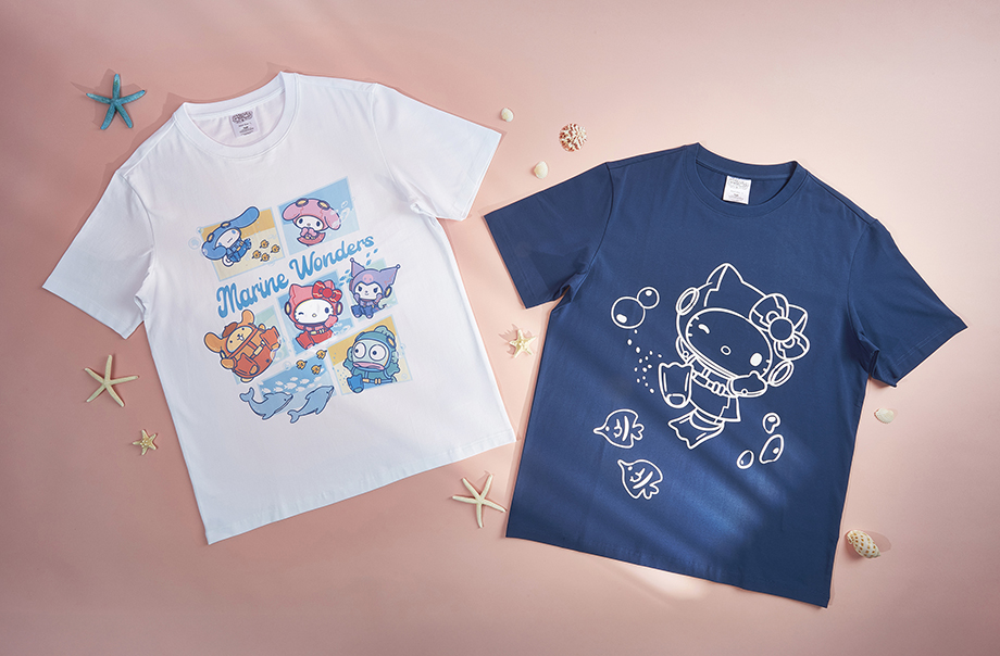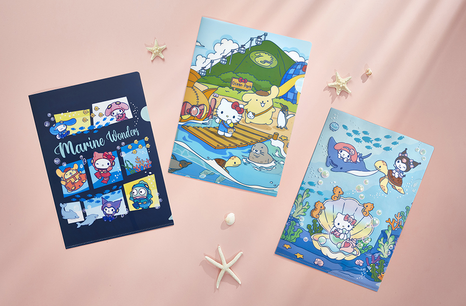園內同時推出多款「蔚藍海洋之旅」限定精品,包括角色潛水造型毛絨公仔、匙扣、環保袋、化妝袋、不鏽鋼保溫杯及親子T恤等。遊戲攤位亦設Sanrio主題獎品,購買滿 HK$500 遊戲券即可獲贈限量文件夾套裝。園內留影站亦增設 Sanrio 主題相架與 Zoda 自拍亭特製相框,讓粉絲將打卡回憶帶回家。