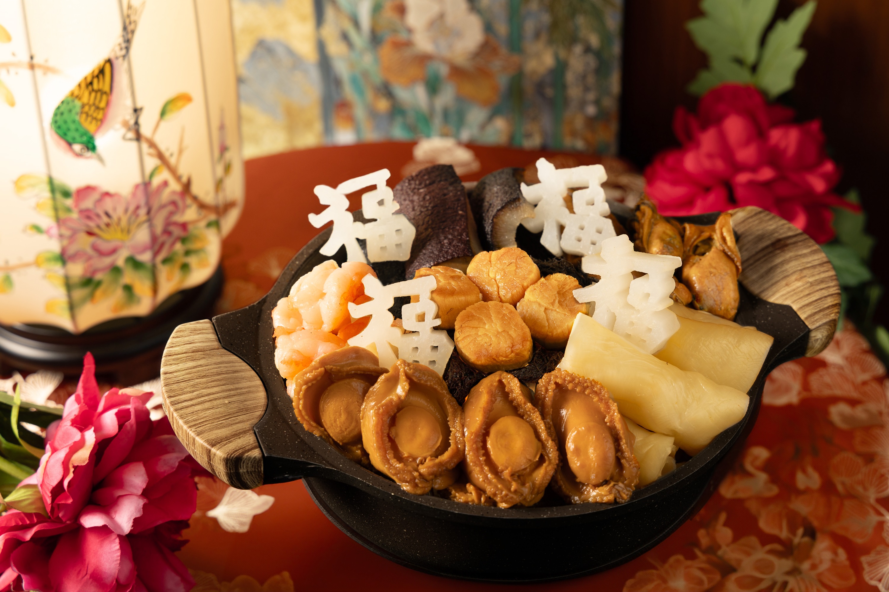 另設八道菜「春華綻放·富貴滿堂」盆菜宴,包含「鮑魚撈起」、「賀年盆菜」、「臘味糯米飯」及「紅豆沙湯圓」等經典菜式,象徵花開富貴。堂食每位 HK$1,380(另收加一服務費),最少四位起,須提前一天預訂。