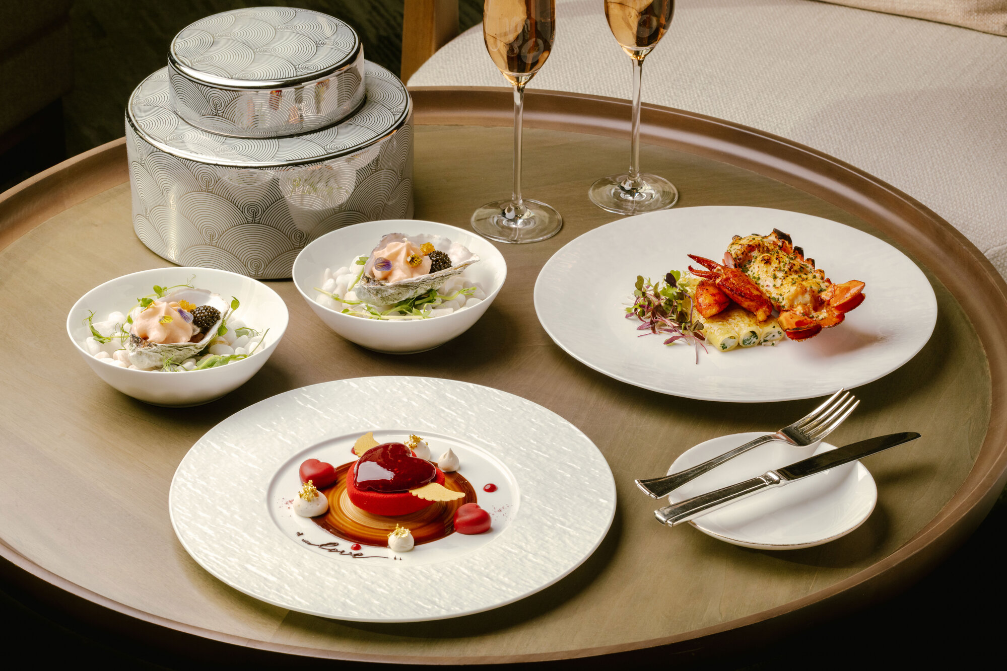 位於酒店核心位置嘅 The Drawing Room 大堂酒廊,情人節當晚會呈獻四道菜情人節晚餐,每位 HK$898,以時令食材細膩演繹浪漫滋味。晚餐亮點包括法式焗波士頓龍蝦,配菠菜瑞可塔芝士釀通粉,口感濃郁而不膩;香煎帶子外脆內嫩,搭配蟹肉、嫩菠菜同南瓜蓉,層次細緻;主菜則以烤 M9 和牛柳作結,肉質柔嫩多汁,配泡芙薯仔、乾蔥醬同松露牛肉汁,香氣十足,為情人節晚宴畫上圓滿句號。