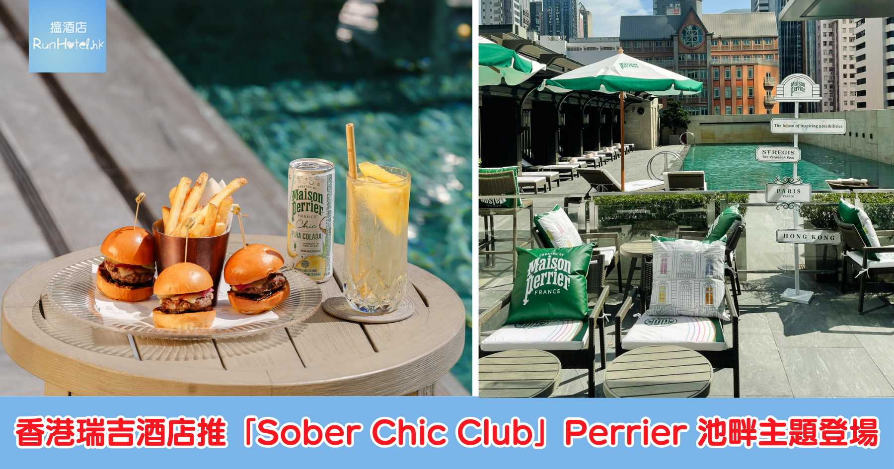灣仔瑞吉酒店宣布推出全新池畔主題「Sober Chic Club」,並與法國氣泡水品牌 Perrier 攜手合作,於酒店 The Verandah Pool 打造以可持續理念為核心的沉浸式零酒精體驗。是次主題將由即日起至年底期間登場,旨在推廣零酒精雞尾酒與正念養生風潮,為賓客帶來優雅從容的池畔時光。