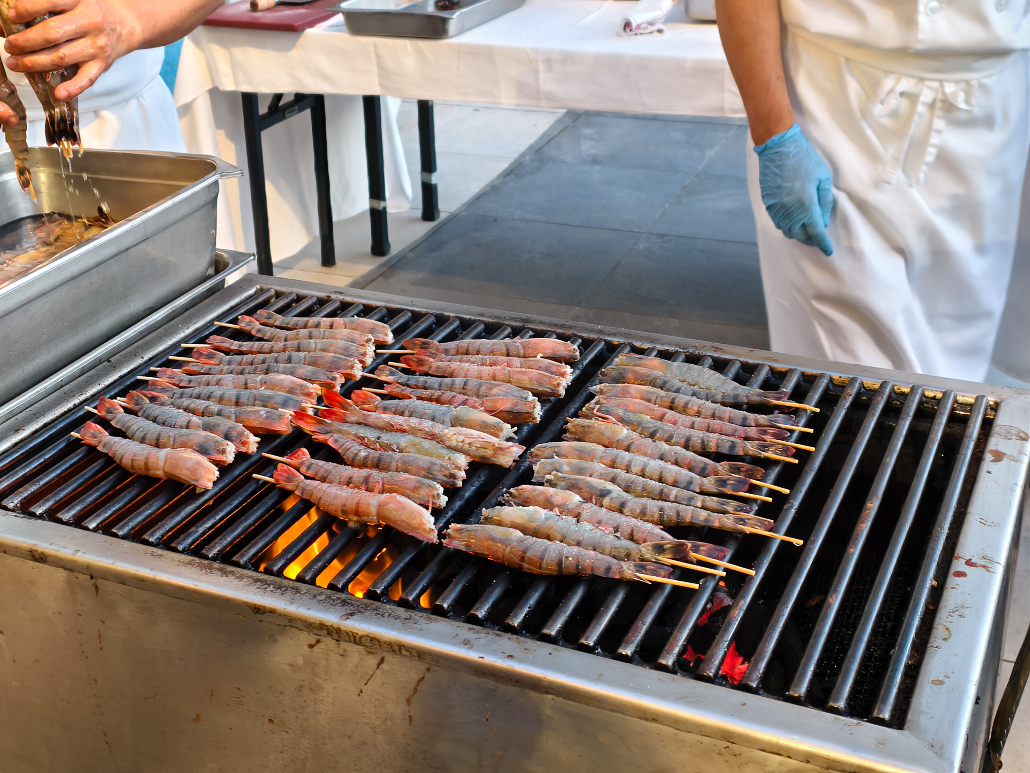 ▼呢張相係 BBQ 區,最搶眼嘅一定係一整排虎蝦排到好靚喺烤爐上,師傅喺旁邊不停落料,香味係全場最吸引。