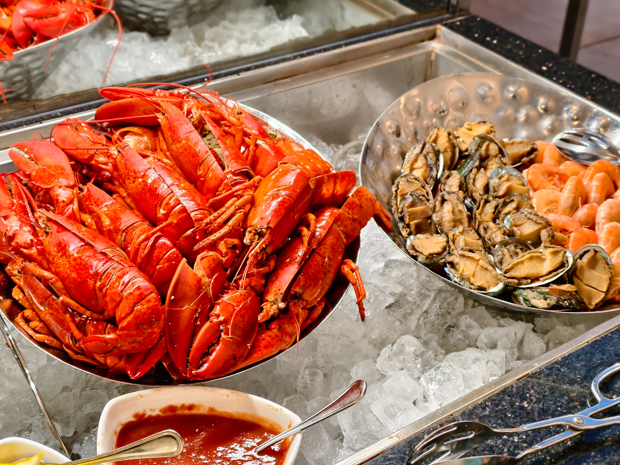 ▼龍蝦隻隻紅潤飽滿,size 唔細,排到整整齊齊,肉質爽口,仲有琵琶蝦。