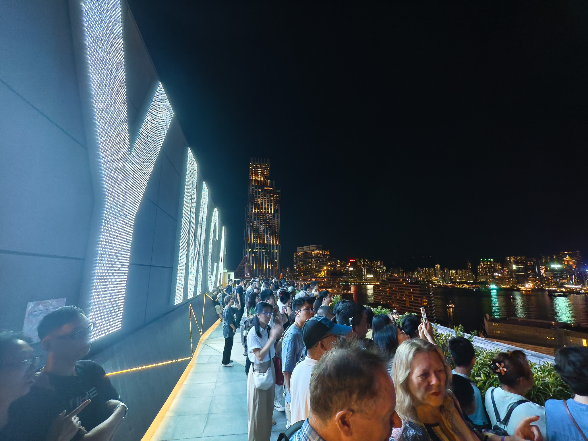 ▼煙花晚上 8 點開始,餐廳大概喺 7 點半會通知食客排隊搭電梯上天台。因為電梯每次只可以上十幾個人,所以都要排十幾分鐘。上到頂層,見到已經有唔少人企好,但場面唔混亂,仲有位置,可以慢慢揀。左邊大大個 YMCA 招牌亮燈,右邊就係一片開揚嘅維港景色。